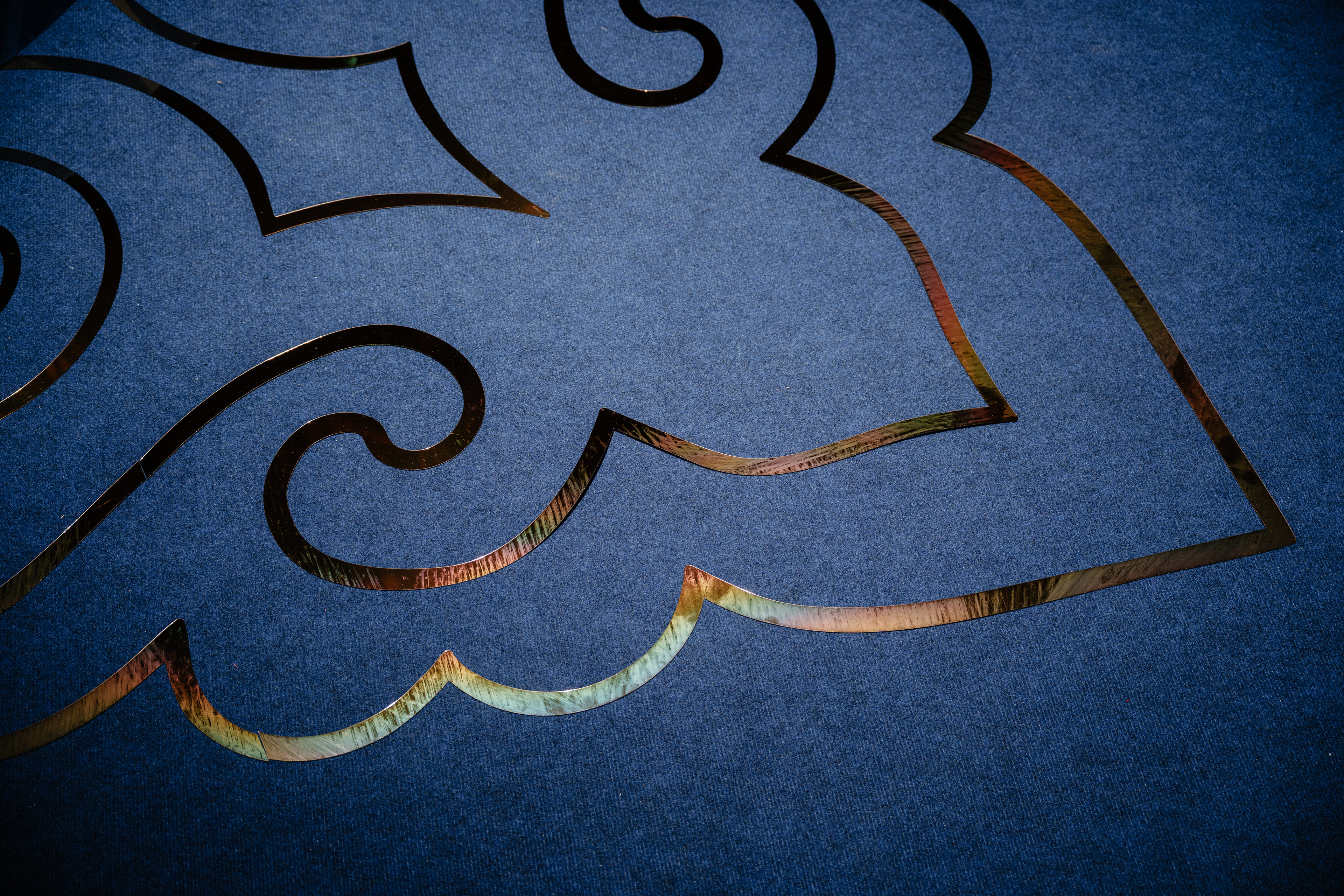 Гостей встречали глубокие символы происхождения и традиций. Декор зоны был выдержан в тёплых благородных синих тонах, органично сочетая уют с культурной памятью: